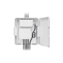 The USW Flex Utility is an outdoor weatherproof enclosure designed for use with the UniFi Switch Flex, USW-Flex. It includes an Ethernet patch cable and a 60W PoE adapter, which provides a maximum PoE budget of 46W. The USW Flex Utility can be easily mounted on a pole, provides clean cable management and screw lock for security.